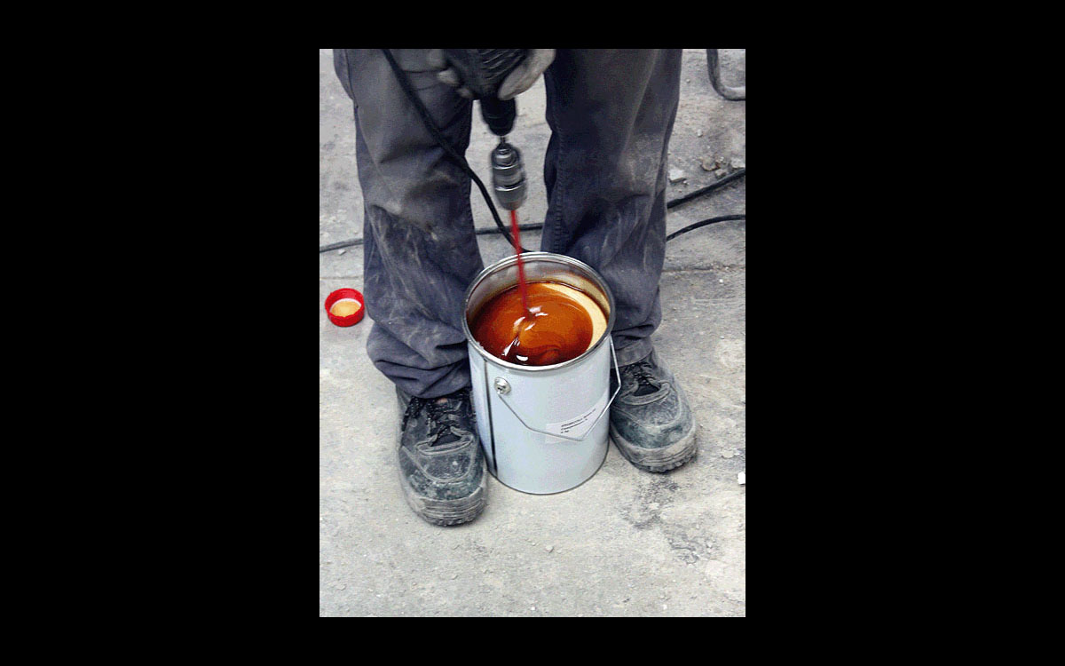 Aplicación del pagamento PUR de DyD sobre la superficie con espatula dentada de 3 mm. (aprox. 750 gr/m2