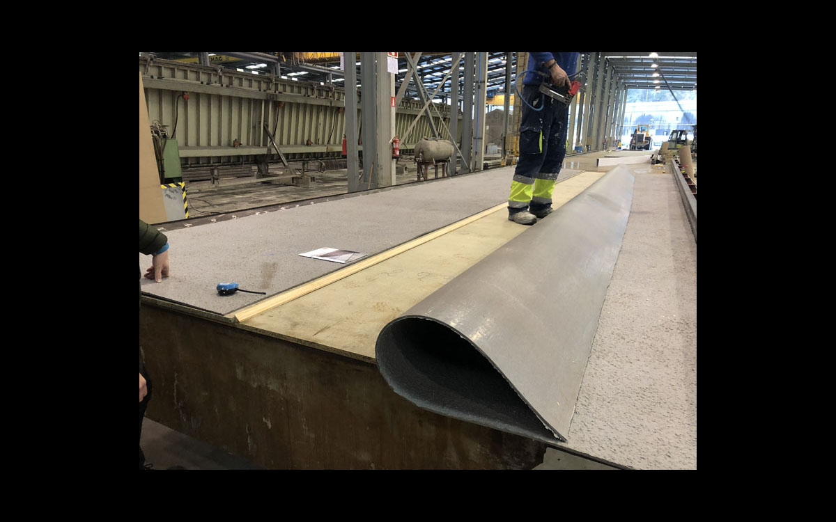 Desenrollado de la matriz sobre el pegamento.