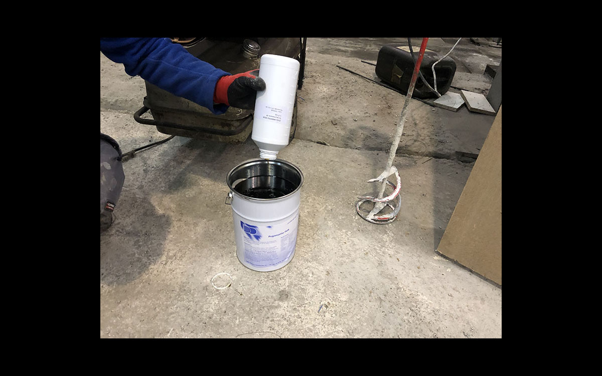 Se vierte el componente B (botella) en el envase del componente A (lata).