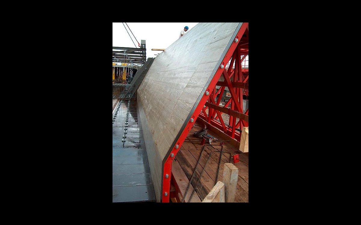 Arquitecto: Mopu Constructor: Dragados Matriz DyD Freiburg Madera Machihembrada. Encofrado deslizante y trepante con nuestra matriz Freiburg.