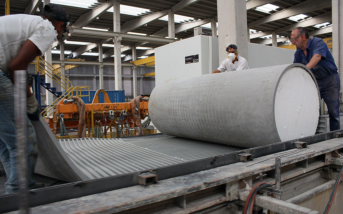 Cleaning with paper and solvent of the gluing surface in the concrete precast factory.